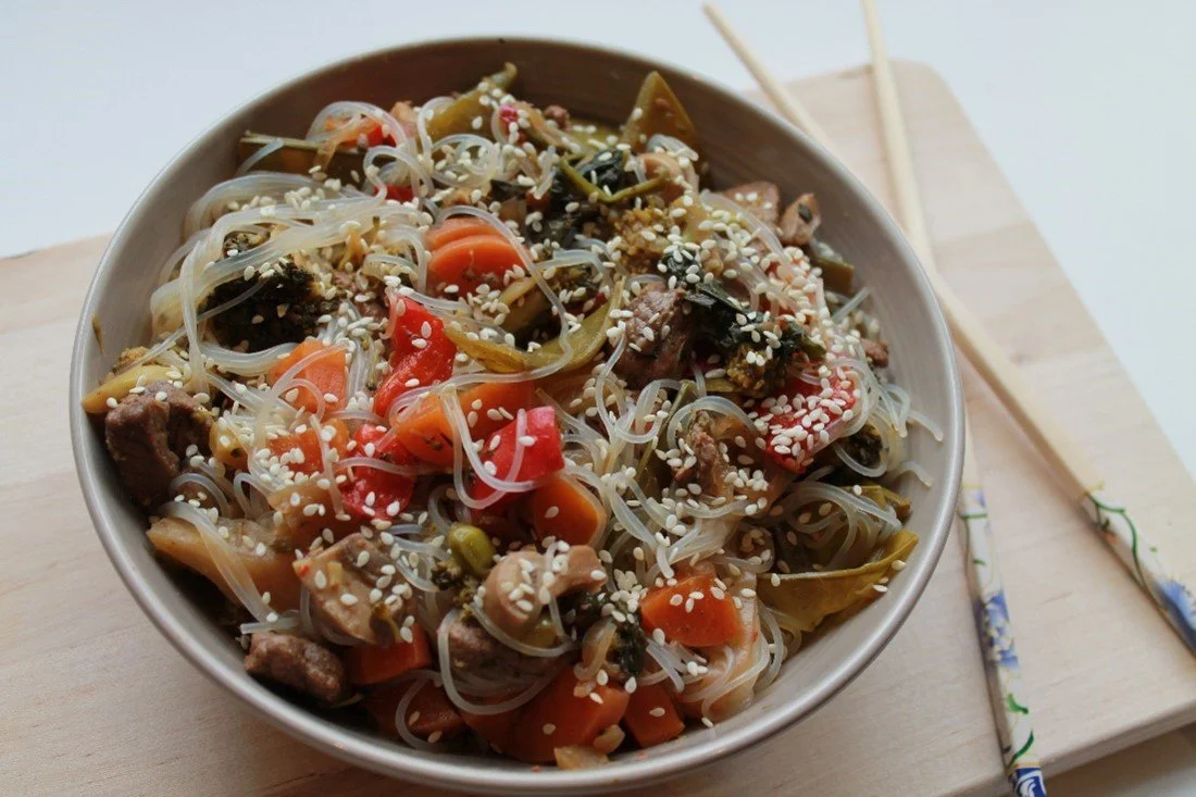 7. Stir through noodles with stir fry mixture or serve separately topped with sesame seeds.